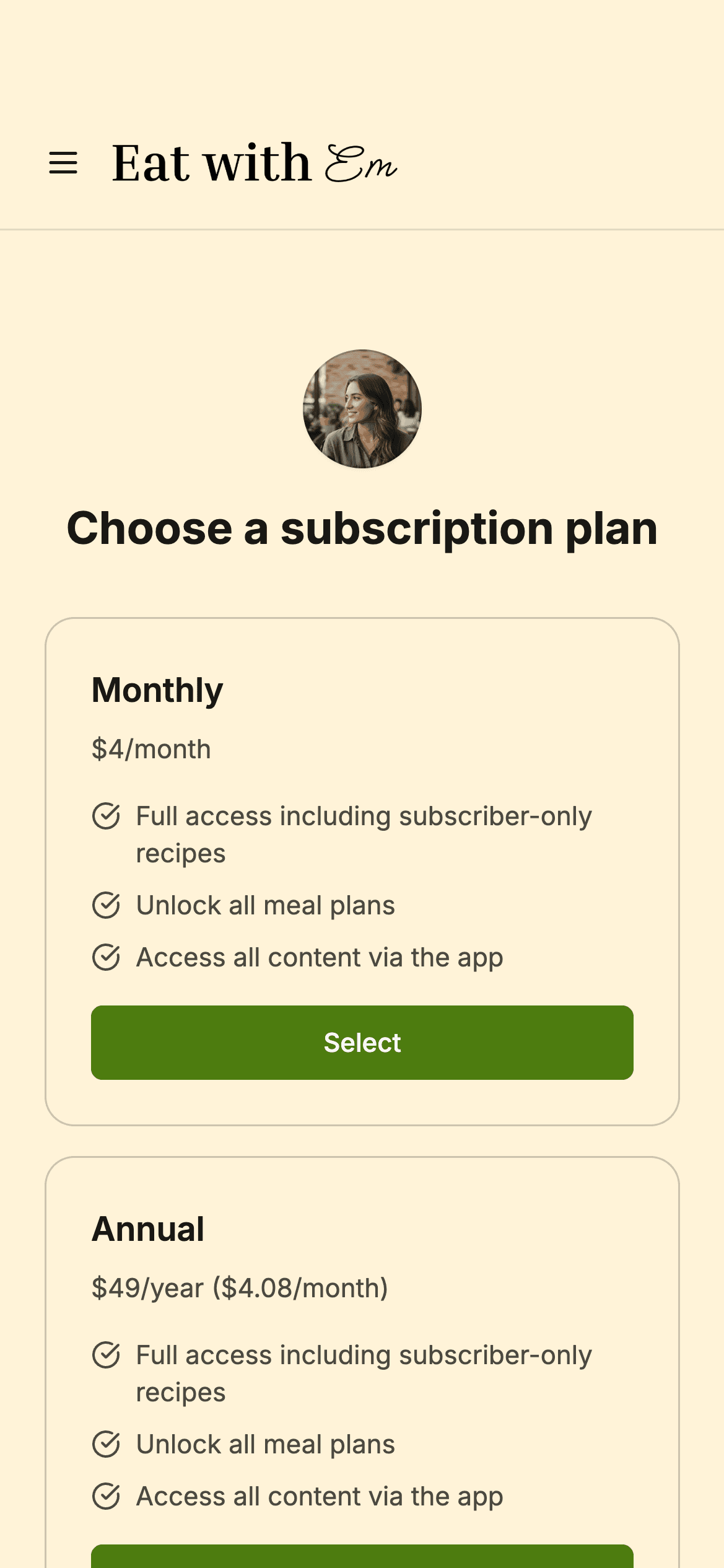 Offer exclusive content, including recipes and meal plans, via your own subscription-model.